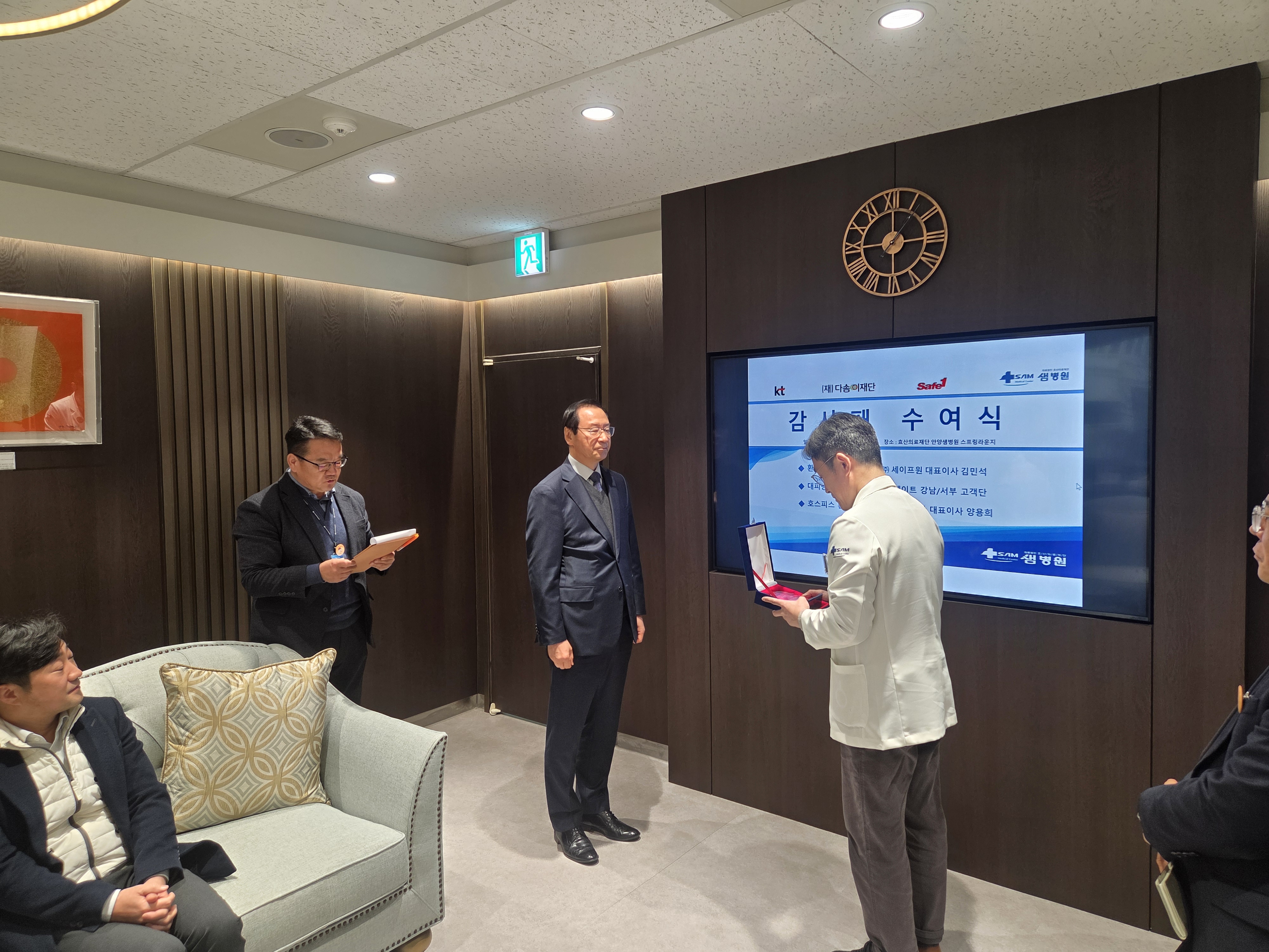 본 수여식은 지난 1월 1일 새벽, 안양샘병원 내에서 발생한 화재 당시 세이프원 임직원들이 보여준 신속하고 헌신적인 구호 활동에 대한 감사의 의미로 마련되었습니다.