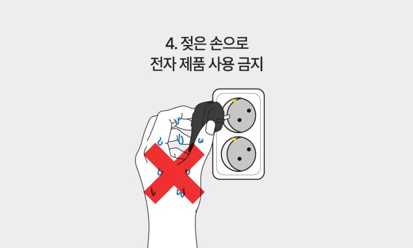 - 반드시 손·발을 건조하고, 습한 장소에서 전기기기 조작 금지.